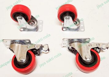 Roda Troli Germany PU Merah Medium Duty 3 Inch (2 Putar + Rem 2 Putar)