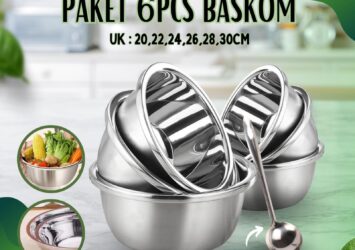 Promo 6 Pcs Baskom Tebal SUS 304 Free 1 Centong Sayur
