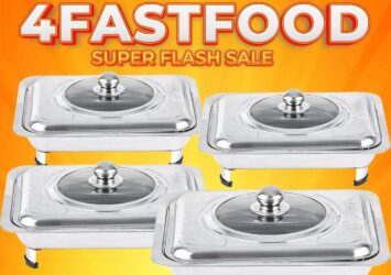 4 Pcs Prasmanan Fastfood Stainless dengan Tutup Kaca – Solusi Hidangan Elegan & Higienis