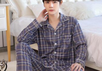 La Survie Piyama Cowok Motif Kotak-Kotak Model Kemeja