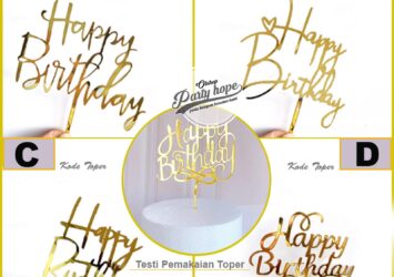Cake Topper HBD Akrilik Emas / Cake Topper Happy Birthday Emas Huruf Latin