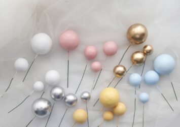 Gr-hbt-0001 Cake Topper Hiasan Kue Bola Emas Perak Biru Pink Putih