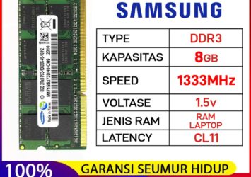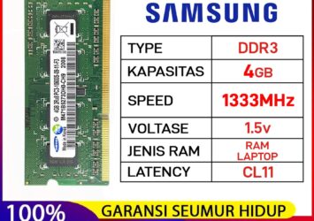 Samsung RAM Laptop DDR3 4GB PC3-10600 1333MHz 1.5V Original – Garansi Seumur Hidup