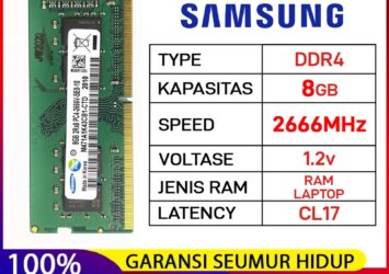 RAM Laptop Samsung DDR4 8GB 2400MHz PC4-19200 – 100% Original & Bergaransi Seumur Hidup