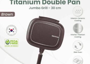 Happycall Titanium Double Pan Jumbo 30cm Grill Pan Anti Lengket – Brown