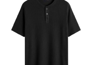 Kaos Pria Polos Crew Neck Kancing 3 Sanghay Lengan Pendek Knitwear Waffle Tebal Cowok