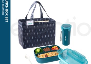 Ecentio 1200ml + 500ml Lunch Box Set dengan Gelas Anti Tumpah dan Kotak Saus | BPA Free