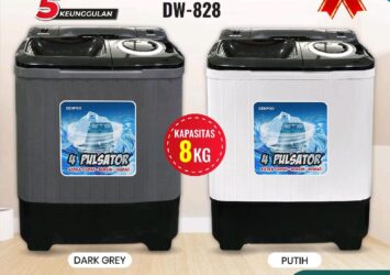Mesin Cuci Denpoo 2 Tabung DW-828: Hemat Listrik, Hasil Bersih Maksimal