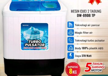Denpoo Mesin Cuci 2 Tabung DW 8908 Turbo Pulsator – 8 Kg