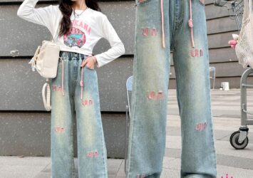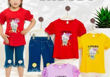 Setelan Jeans Cutbray Rawis Anak Perempuan Motif Labubu – Paket Hemat 2 Setel