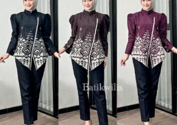 Batik Wilis Atasan Batik Wanita Modern Lengan Panjang Puffy Blouse Model Kebaya Janggan Motif Aziza