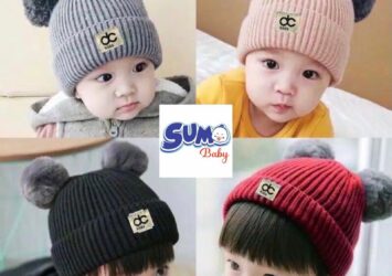 Topi Rajut Pompom Kombinasi untuk Bayi 0-3 Tahun