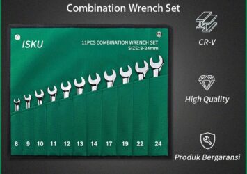 Isku Kunci Ring Pas Set 11pcs 8-24mm CRV Kombinasi Wrench Set
