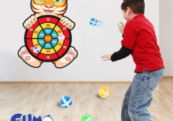 Mainan Anak Lempar Bola Tempel Papan Panah Dart Game Board Ball Kartun