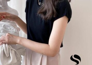 Shenel Yoori Top Rajut Turtleneck Lengan Pendek Korean Style