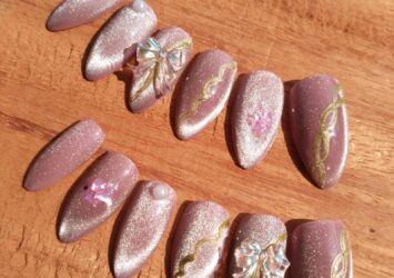 Nail Dusty Pink Cat Eye Chrome dengan Lem Jell Gratis