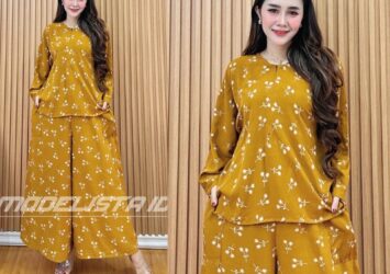Nabila Oneset Setelan Baju Wanita Jumbo LD 130 Bahan Rayon Motif Resleting Depan Busui By Modelista