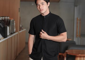 Kemeja Hitam Pria Casual Lengan Pendek Slim Fit Anti Kusut