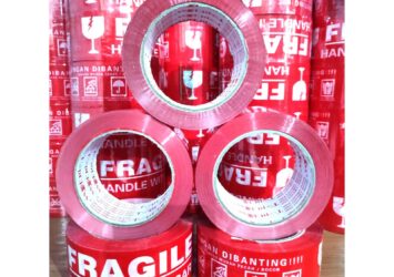 Lakban Fragile Merah 100 Meter x 48 mm: Pelindung Paket Terpercaya