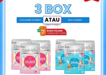 Coolvita 3 Box DHA Gummy & Collagen Gummy | Minyak Alga Omega-3, Suplemen Otak untuk Fokus & Daya Ingat Anak | BPOM & Original
