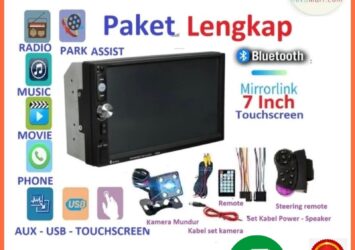 Paket Lengkap Tape Mobil Double Din 7 Inch Kamera Mundur Remote Setir