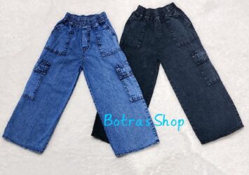 Celana Kulot Jeans Cargo untuk Anak Perempuan Usia 2-16 Tahun