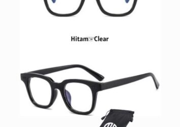 Kacamata Retro Hitam Frame dengan Lensa Clear Putih – Stylish & Nyaman