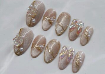 Nail By Aisha Wedding Press On Nails Ivory Nude Cat Eyes | Custom Size / Warna