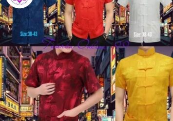New Year Sale Cheongsam Pria Lengan Pendek Silky Import