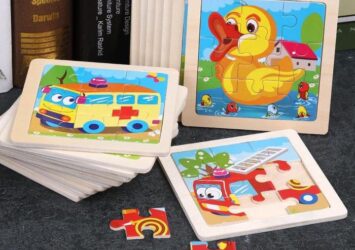 Puzzle Jigsaw Kayu 9pcs untuk Anak – Karakter Hewan & Kendaraan Lucu