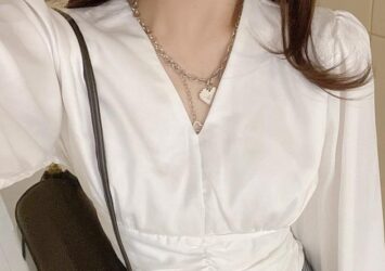 V-neck Long Sleeve Pleated Blouse Top 1388 (S-XL)