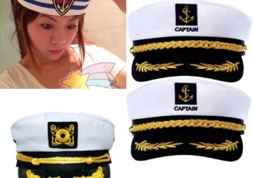 Topi Katun Gaya Kapten Kapal Bordir Jangkar Warna Putih