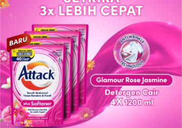 Attack Plus Softener Deterjen Cair Liquid Glamour Rose Jasmine Pouch 1200 Ml Fourpack Anti Kusut