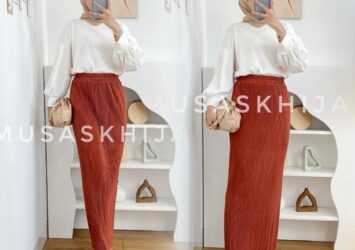 Rok Plisket Premium Part 2 Karet Muslim Wanita Motif Bawahan Panjang Outfit Muslimah Maxi