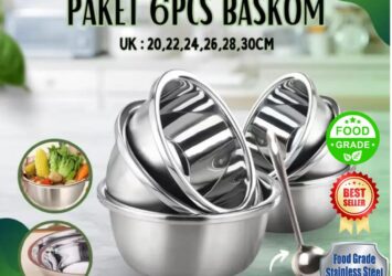 Set Baskom Stainless Steel 6pcs + Centong – Multifungsi untuk Dapur Rumah Tangga