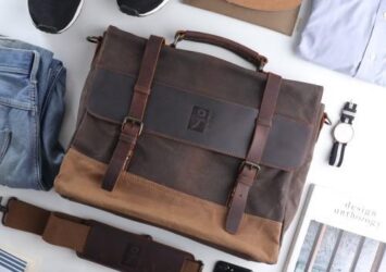 Tas Selempang Kantor Laptop Pria Wax Canvas + Kulit Asli Ishiya Agate
