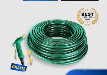 Paket Semprotan Selang Air Serat Benang Hijau 15m (1/2, 5/8, 3/4 Inch) / Cuci Motor Mobil Siram Tanaman
