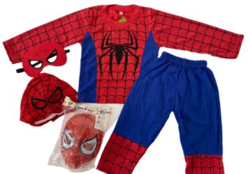 Kostum Spiderman Anak Laki-Laki dengan 3 Topeng