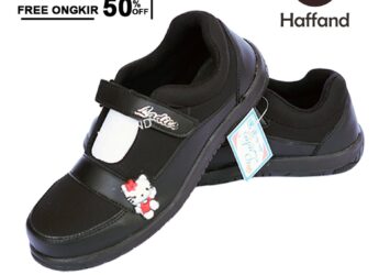 Flat Shoes Anak Perempuan Sekolah SD dan TK / Spotty Hello Kitty Hitam 26-35