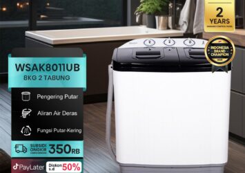 Hisense WSAK8011UB Mesin Cuci Twin Tub 8kg: Cucian Bersih, Pengeringan Cepat, dan Hemat Listrik