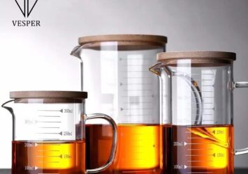 Gelas Ukur Kaca Tahan Panas dengan Tutup Kayu Eksklusif