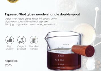 Espresso Shot Glass 75ml Wooden Handle | Gelas Takar Kopi 2,5 Oz