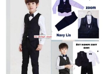 Setelan Jas Anak Pesta 4 In 1 Hitam Rompi 2-13 Tahun