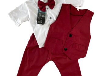 Setelan Tuxedo Merah Maroon Jas Formal Anak 3 Bulan Sampai 10 Tahun Lengan Pendek Polos Katun