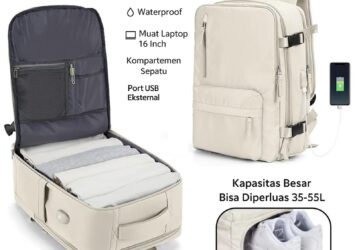 Lexy Backpack: Tas Ransel Travel Ekspansi 35-55L, Tahan Air, Muat Laptop 16 Inci
