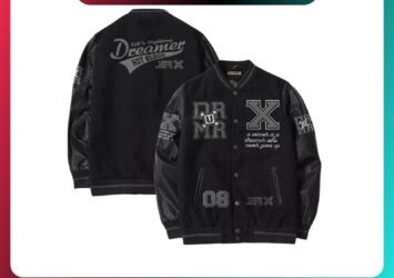 X Urband Absolute: Jaket Baseball Varsity DRXMR Fleece Kulit Tebal Pria, Gaya Casual Korea Hitam Keren