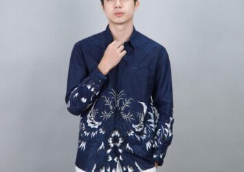 Swipe Up Kimeja Batik Pria Katun Slimfit Modern Lengan Panjang Motif Katsura Navy