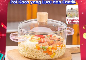 Panci Soup Rebus Kaca Tebal 1600ml Borosilicate Glass Cooking Soup Pot Transparan Anti Panas