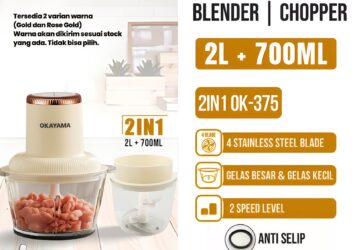 Okayama OK-375 Food Chopper & Blender 2in1 Multifungsi untuk Dapur Modern