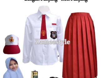 Paket Lengkap Setelan Seragam Anak Sekolah Merah Putih Perempuan Baju Panjang Dan Rok Panjang Kelas 1-6 SD